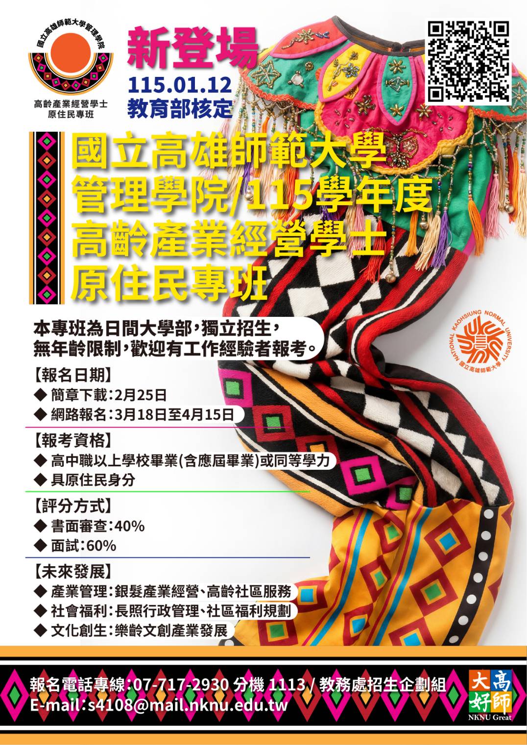 二、招生報名日期自115年3月18日起至115年4月15日止,招生簡章即日起可免費下載。